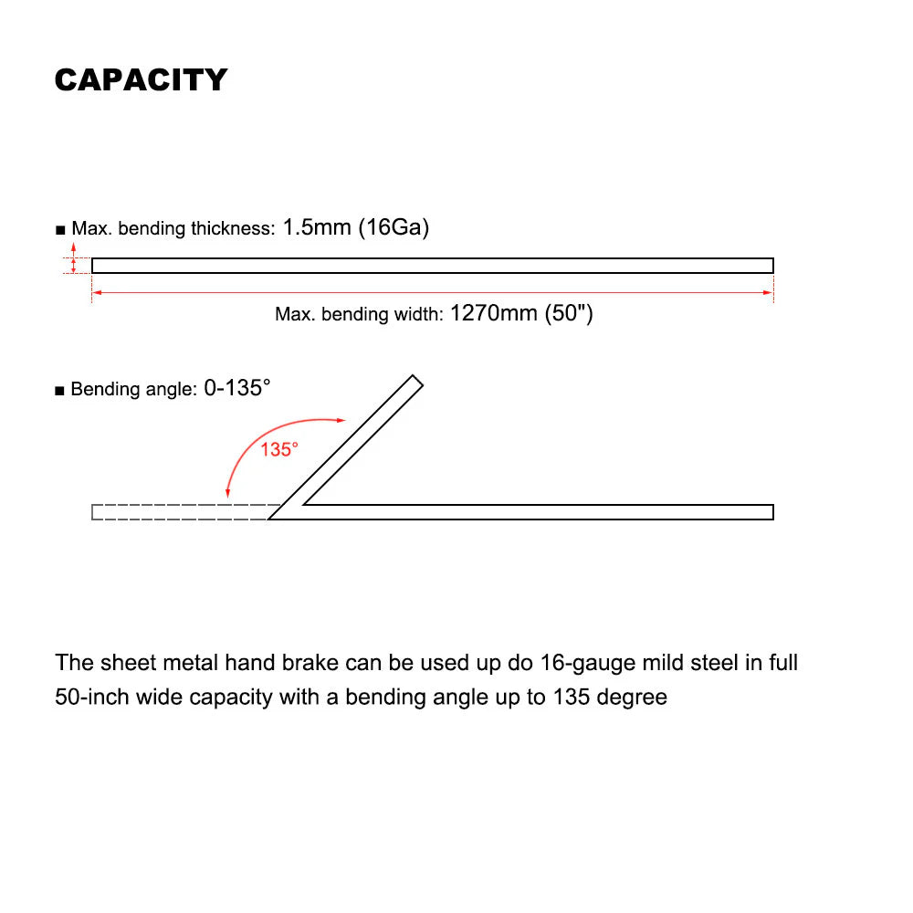 KaKa Industrial Sheet Metal Brake, 50-Inch Box and Pan Brake, 16-Gauge Capacity Metal Break, 4-Inch Box Depth Adjustment Press Brake, 5/8-Inch Beam Pan and Box Brake Machine BP-1650 173030