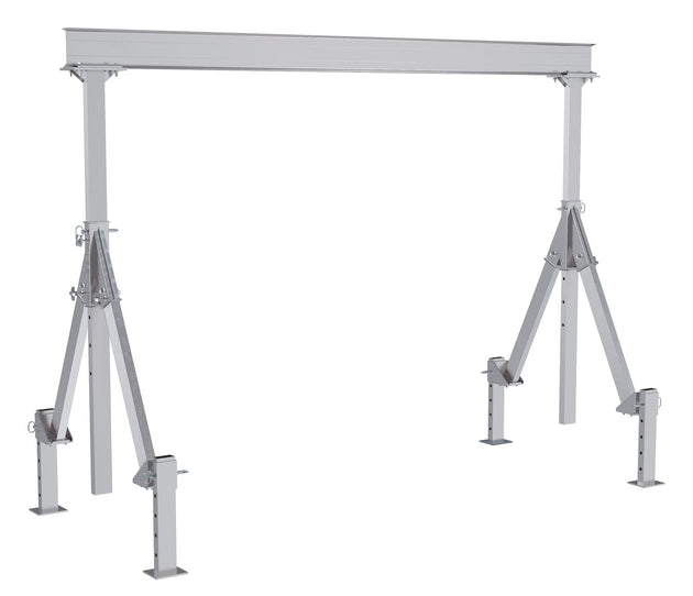 Vestil Aluminum Adjustable Height Gantry Crane With Adjustable Leveling Option 10 Ft. Wide x 8 Ft. Max Usable Height 4,000 Lb. Capacity Silver AHA-4-10-8-ALO