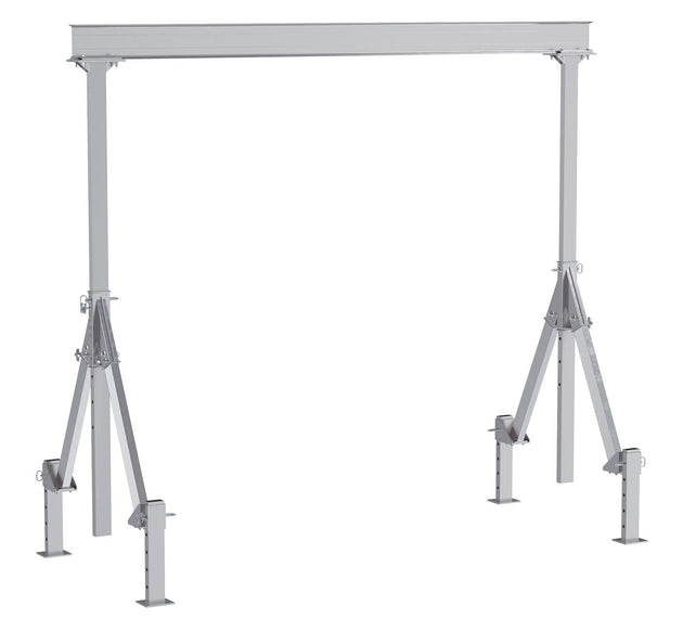 Vestil Aluminum Adjustable Height Gantry Crane With Adjustable Leveling Option 8 Ft. Wide X 8 Ft. Max Usable Height 2,000 Lb. Capacity Silver AHA-2-8-8-ALO