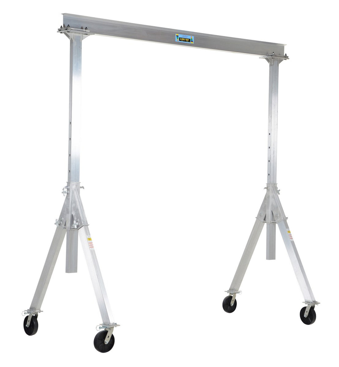 Vestil Aluminum Adjustable Height Gantry Crane with Glass Filled Nylon Casters 10 Ft. Wide x 10 Ft. Max Usable Height 2,000 Lb. Capacity Silver AHA-2-10-10