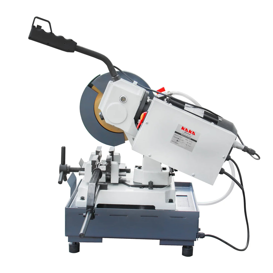 It runs on 110 V power, a 1 PH motor, and a gear drive. The powerful motor provides the necessary torque to drive the circular saw blade, which cuts metal workpieces with efficiency and accuracy.
