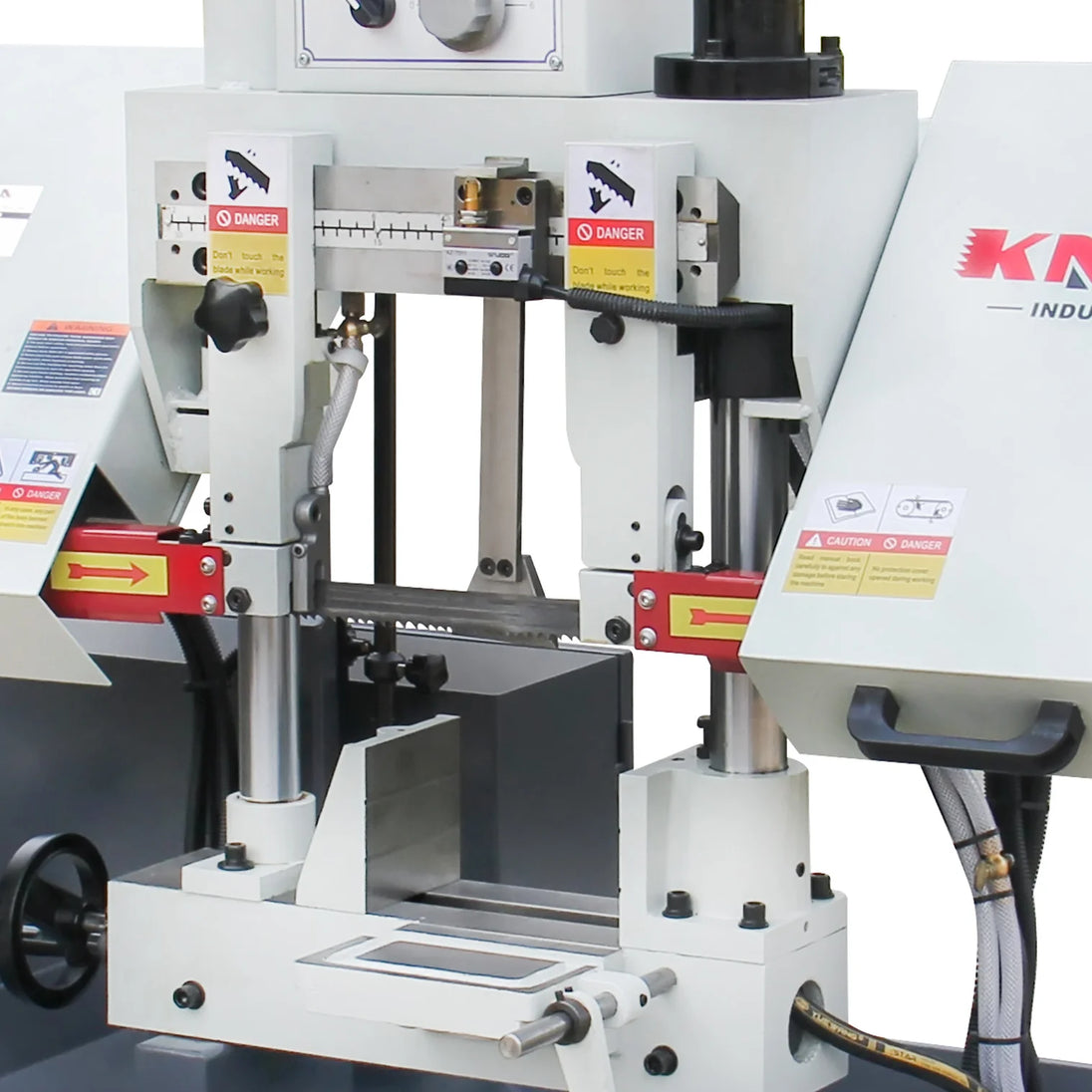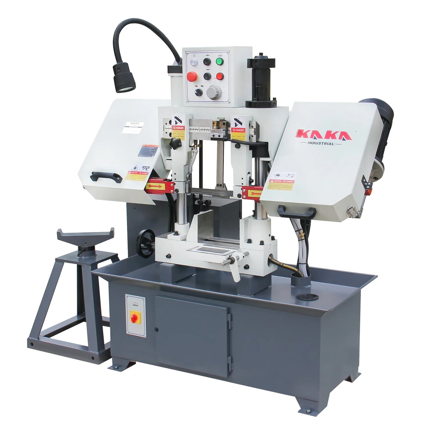 This metal-cutting bandsaw has all the features needed for professional metal-cutting results, allowing users to perform a variety of cuts. It has a double-column structure, vertical lifting, and high stability.