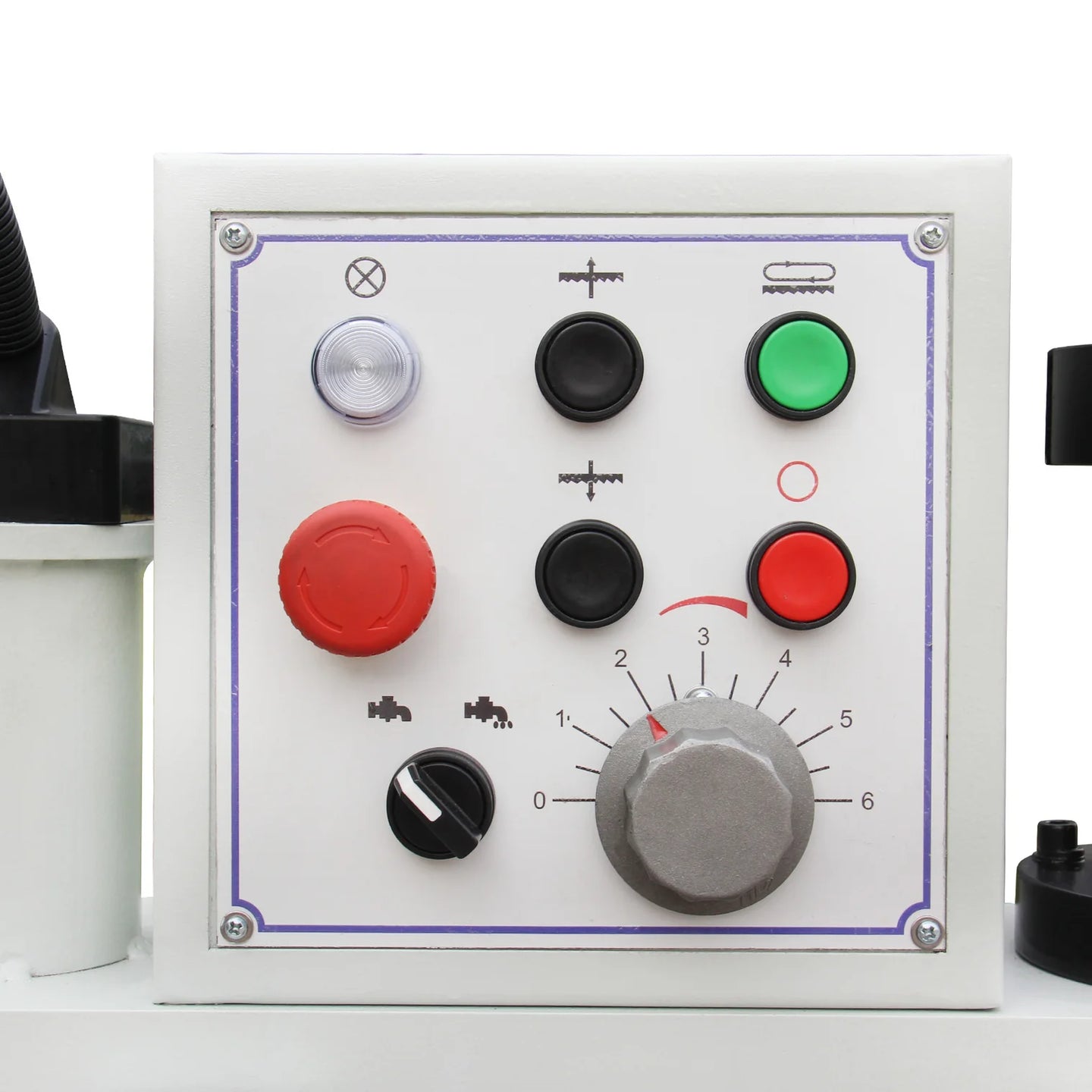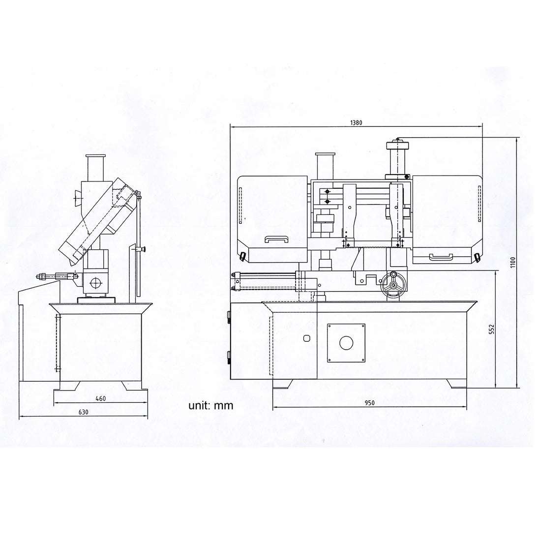 Runs on 230V power. Industrial-grade double-column bandsaw. 1.3/1.8 kW double speed motor to get two saw blade speeds: 91.8, 147.6 ft/min. Gear drive. The powerful motor provides the torque to drive the bandsaw blade through metal workpieces efficiently and accurately. This bandsaw can cut various materials, including metals, plastics, composites, wood, rubber, foam, ceramics, glass, and more.