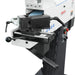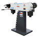 It runs on 220 V power and a double-speed motor. The powerful 2.2/2.8 kW motor moves the belt at 15 m/sec and 30 m/sec, easily removing material from even the most rigid steel.