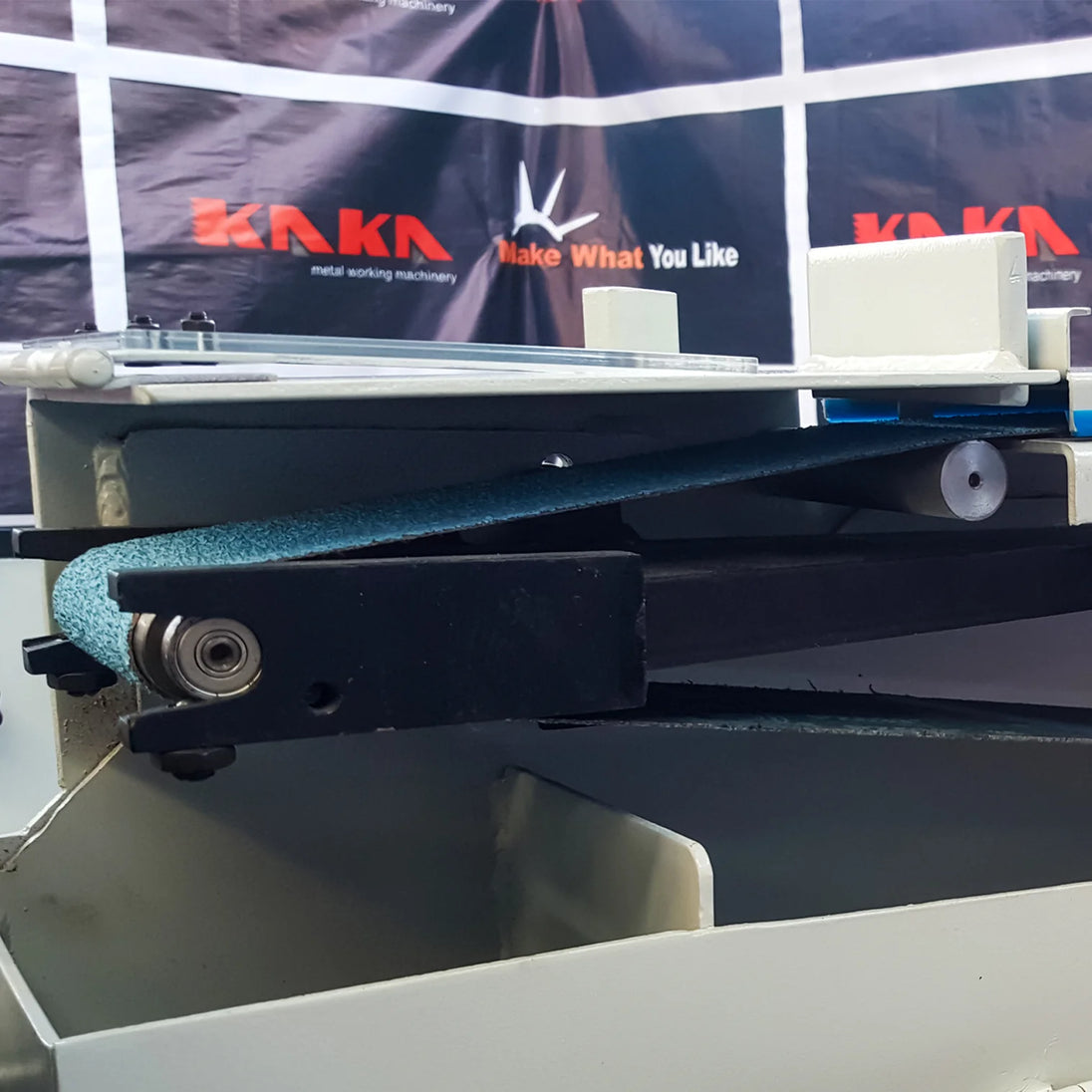Our belt grinder is equipped with a vibration-proof protective device and an optional vacuum cleaner. It is made from heavy steel that is folded and electric welded for further rigidity and less vibration. Besides, it is equipped with an emergency stop switch so that it can be stopped urgently in any situation.
