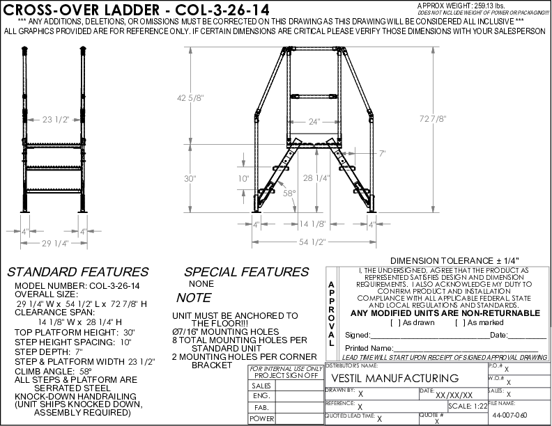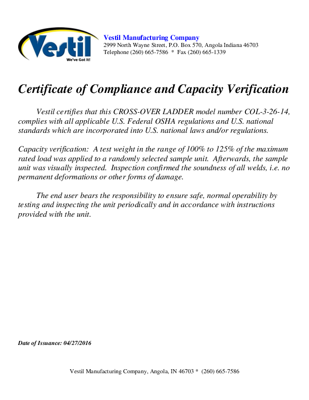 Vestil Steel Crossover Ladder 3 Step 23-1/2 In. x 24 In. 500 Lb. Capacity Yellow COL-3-26-14
