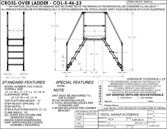Vestil Steel Crossover Ladder 5 Step 23-1/2 In. x 36 In. 500 Lb. Capacity Yellow COL-5-46-23
