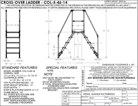 Vestil Steel Crossover Ladder 5 Step 23-1/2 In. x 24 In. 500 Lb. Capacity Yellow COL-5-46-14