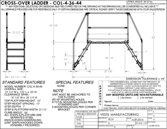 The cross-over ladder mounts where you need permanent access at crossover points. The upper platform features removable two sided handrail with mid-rail and fixed toe boards to prevent objects from rolling off. Ground legs include floor...Sale price $2,007.43Regular price $2,087.43Sale price $2,007.43Regular price $2,087.43 -