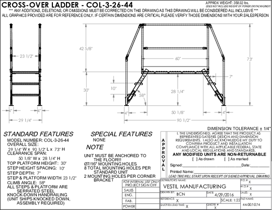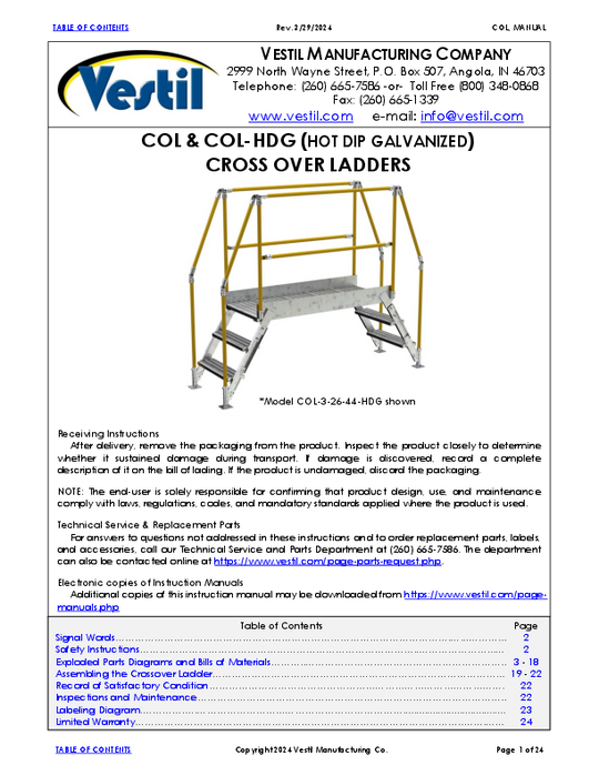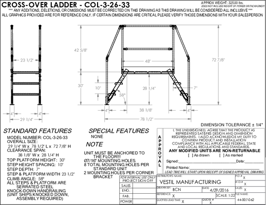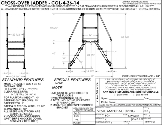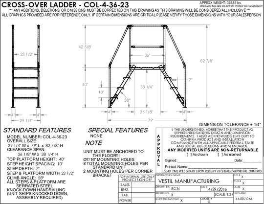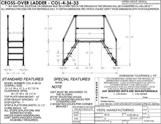 Vestil Steel Crossover Ladder 4 Step 23-1/2 In. x 48 In. 500 Lb. Capacity Yellow COL-4-36-33
