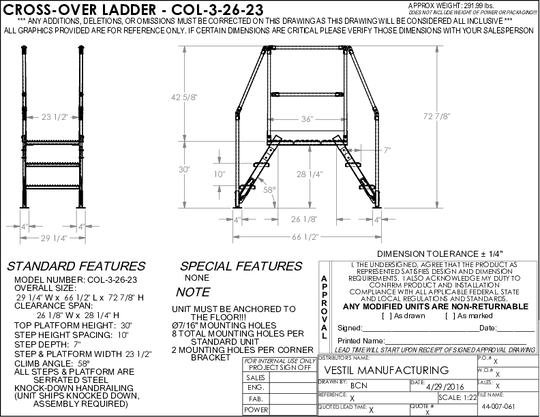 The cross-over ladder mounts where you need permanent access at crossover points. The upper platform features removable two sided handrail with mid-rail and fixed toe boards to prevent objects from rolling off. Ground legs include floor...Sale price $1,539.58Regular price $1,629.58Sale price $1,539.58Regular price $1,629.58