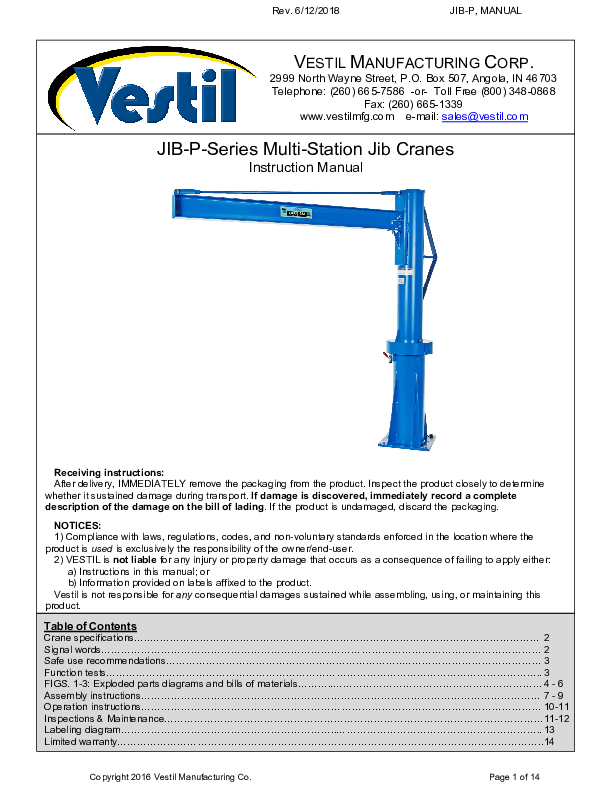 Vestil Steel Multi Station Jib Crane 72 In. I-Beam 1000 Lb. Capacity Blue JIB-P-10-6-8