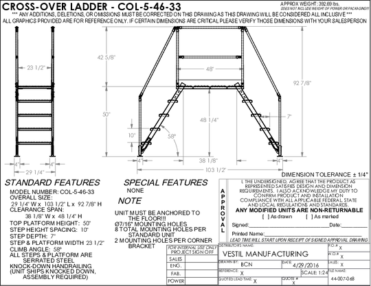 The cross-over ladder mounts where you need permanent access at crossover points. The upper platform features removable two sided handrail with mid-rail and fixed toe boards to prevent objects from rolling off. Ground legs include floor...Sale price $1,934.17Regular price $2,014.17Sale price $1,934.17Regular price $2,014.17 -