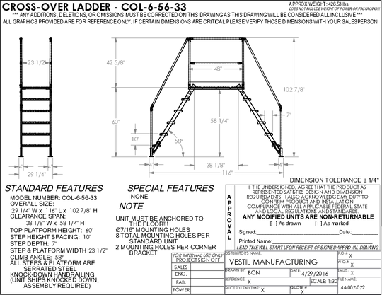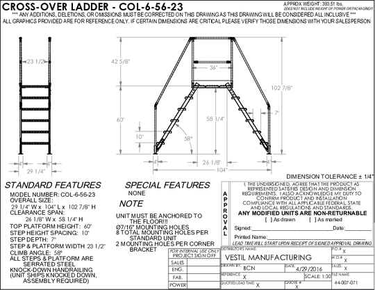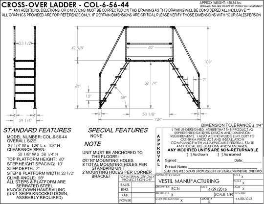 Vestil Steel Crossover Ladder 6 Step 23.5 In. x 60 In. 500 Lb. Capacity Yellow COL-6-56-44