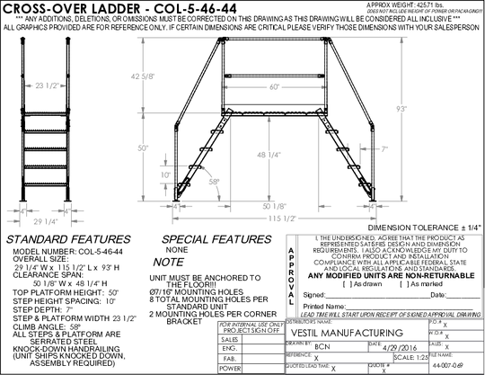 Vestil Steel Crossover Ladder 5 Step 23-1/2 In. x 60 In. 500 Lb. Capacity Yellow COL-5-46-44