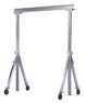 The adjustable height Aluminum Gantry crane combines lightweight and rigid, sturdy construction into one unit. The all aluminum construction of this gantry crane makes it corrosion resistant and perfect for outdoor use. The lightweight I-beam allows simple height adjustments. All pinned connections make it possible for single person set up and take down in just minutes. Included are two straps, allowing one person to transport the gantry crane in one neat package. Unit comes standard four (4) V-groove casters, allowing for quick movement and positioning adjustments.