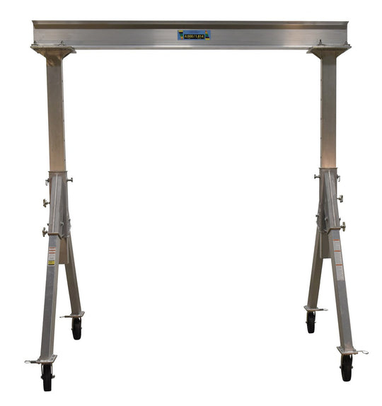 Vestil Aluminum Adjustable Height Gantry Crane with Phenolic Casters 8 Ft. Wide x 8 Ft. Max Usable Height 4,000 Lb. Capacity Silver AHA-4-8-8