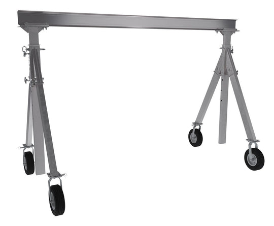 Vestil Aluminum Adjustable Height Gantry Crane with Phenolic Casters 8 Ft. Wide x 12 Ft. Max Usable Height 4,000 Lb. Capacity Silver AHA-4-8-12