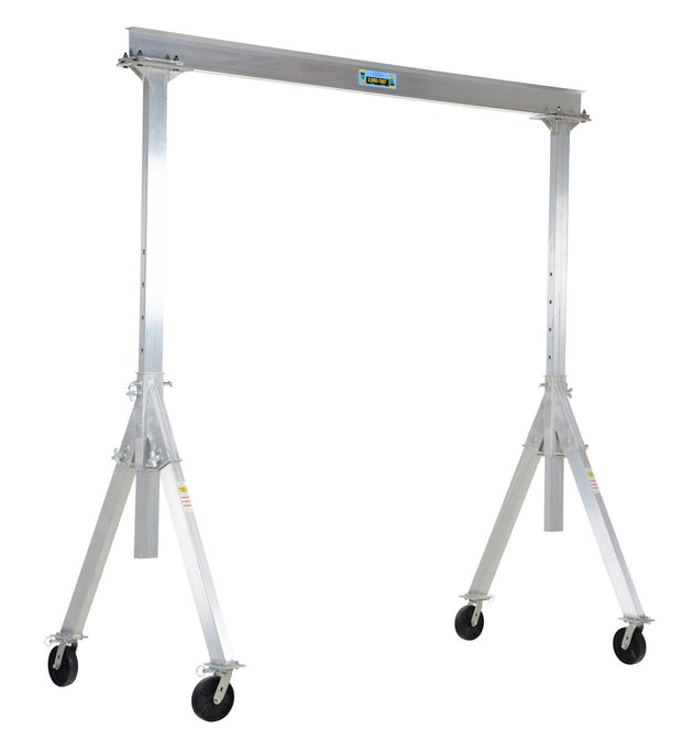 Vestil Aluminum Adjustable Height Gantry Crane with Glass Filled Nylon Casters 10 Ft. Wide x 8 Ft. Max Usable Height 2,000 Lb. Capacity Silver AHA-2-10-8
