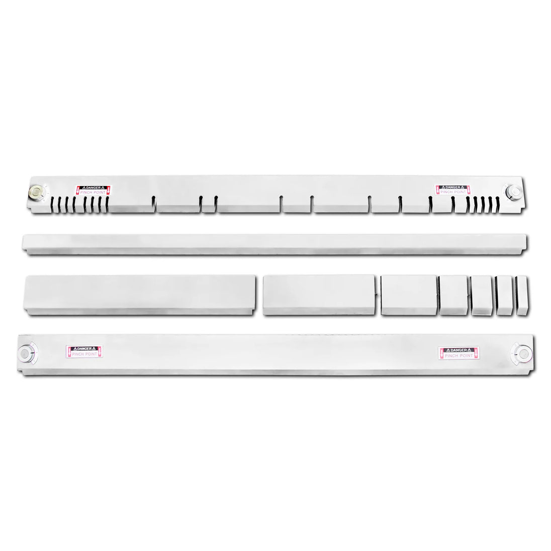 - Equipped with multiple clamp bars, the EB-4816B offers unmatched flexibility for various bending tasks, from straight bends to intricate box and pan applications. It is especially effective for bending irregularly shaped products. The compact and lightweight design, combined with a standard 220V household power supply, makes it easy to transport and independent of workshop location.